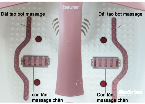 Đặc biệt, bồn được Beurer trang bị con lăn massage lớn có thể tháo rời kết hợp với đèn hồng ngoại chuyên dụng và ngăn chứa dành riêng cho các loại thảo dược hoặc muối massage, cho hiệu quả massage và thư giãn cao hơn các phương pháp thông thường.