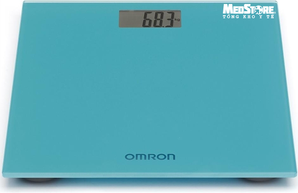 Cân điện tử Omron HN 289 với thiết kế màu xanh.