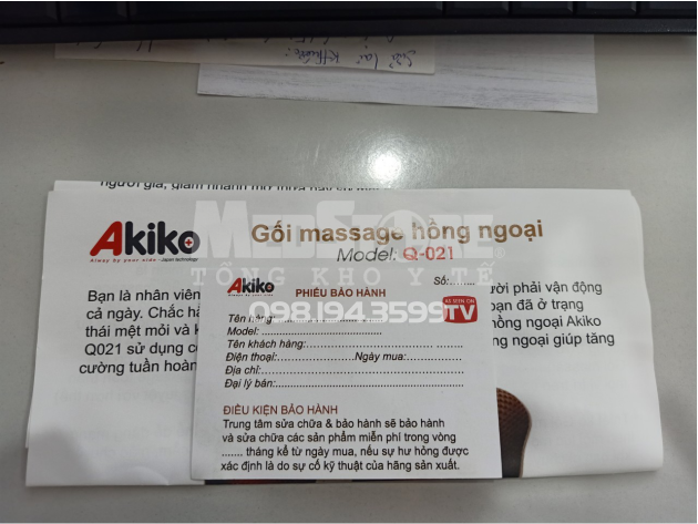 - Gối massage hồng ngoại Akiko Q021 có 2 chế độ massage thông minh là massage thường và massage hồng ngoại.