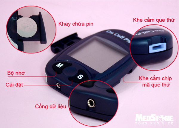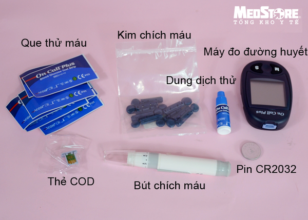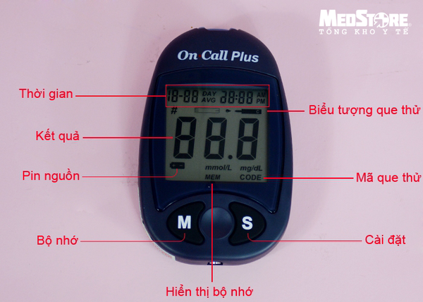 Lưu ý: Máy sử dụng que thử đường huyết On Call Plus.